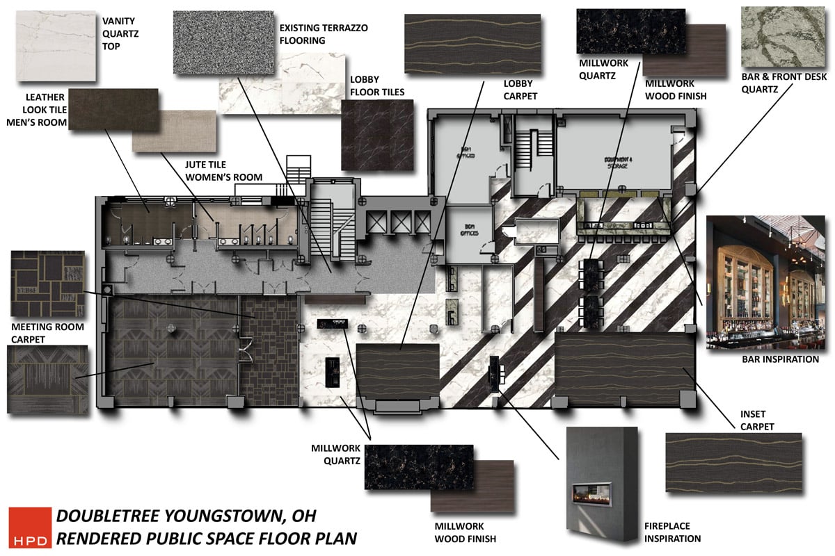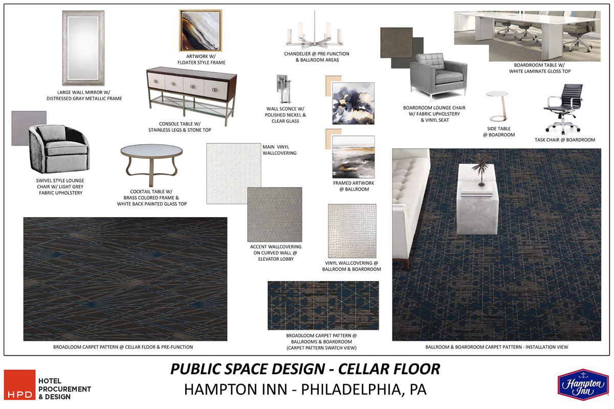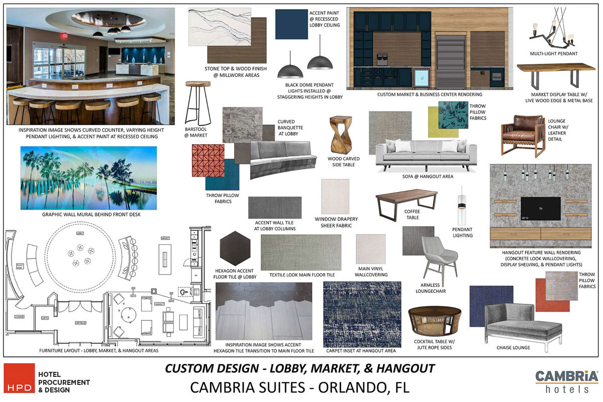 Our professional interior designers are experienced in all hotel brand design schemes. They also develop unique, custom designs to meet a client's vision and design directive. We will prepare state of the art color boards for presentation to the franchise brand for approvals. The color boards can also be displayed at the property to let guests know about the upcoming renovation and are also great tools for hotel management to use for marketing and sales.