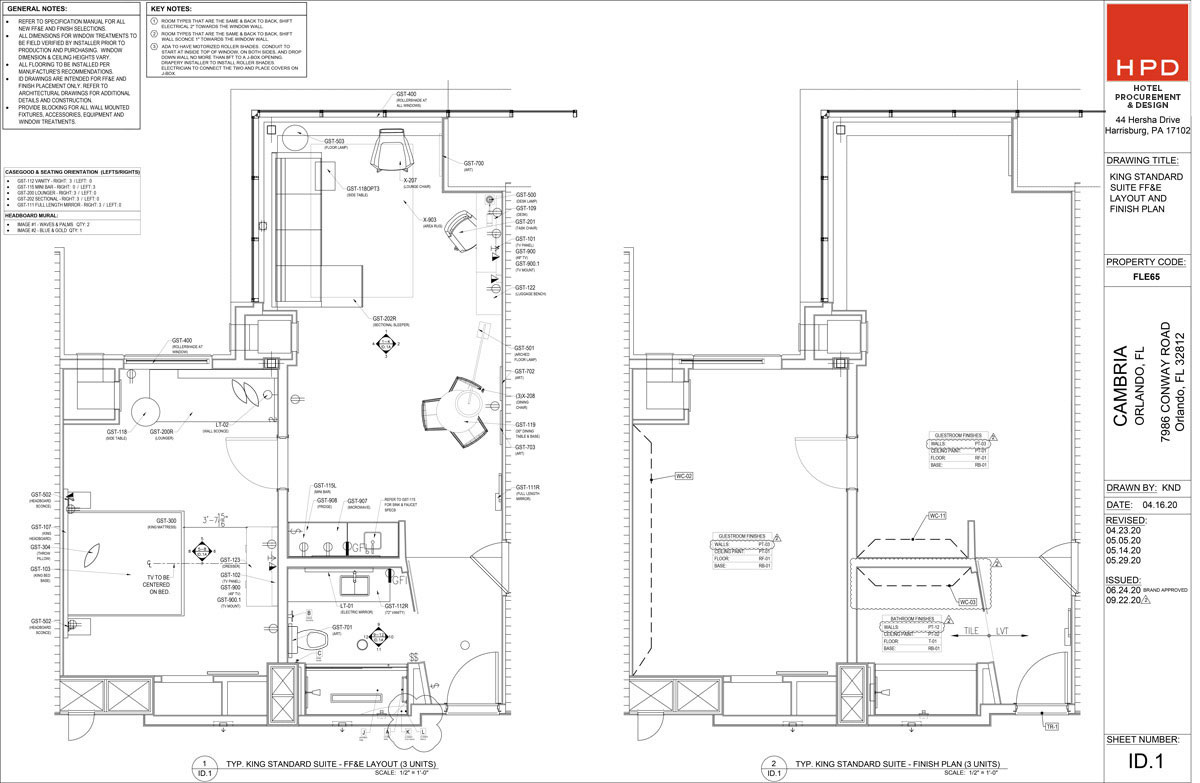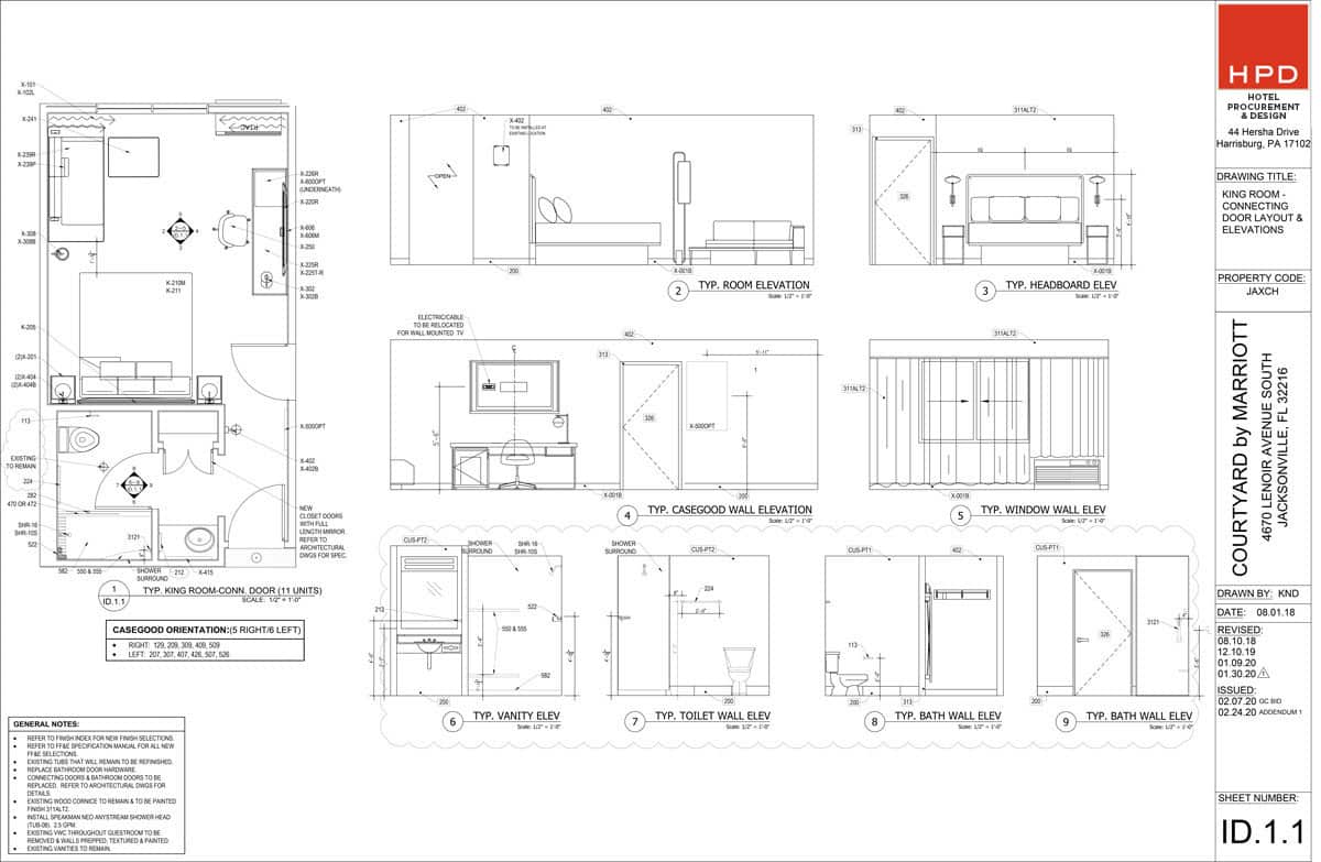 We specialize in designing FF&E interior design drawings for new construction projects, as well as renovations. Our AutoCAD drawings include layouts of the guest room types, public areas, elevations and any additional drawings that may be required for a specific project.